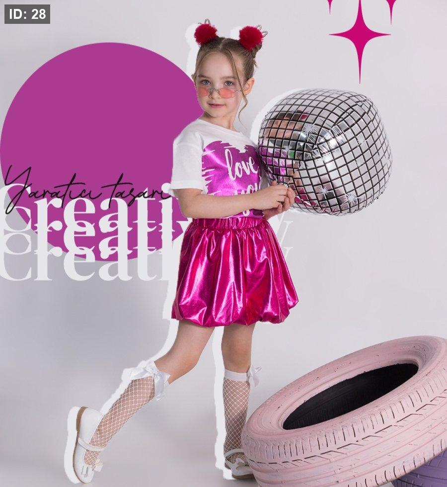 طقم تنورة فوشي وبلوزة ابيض