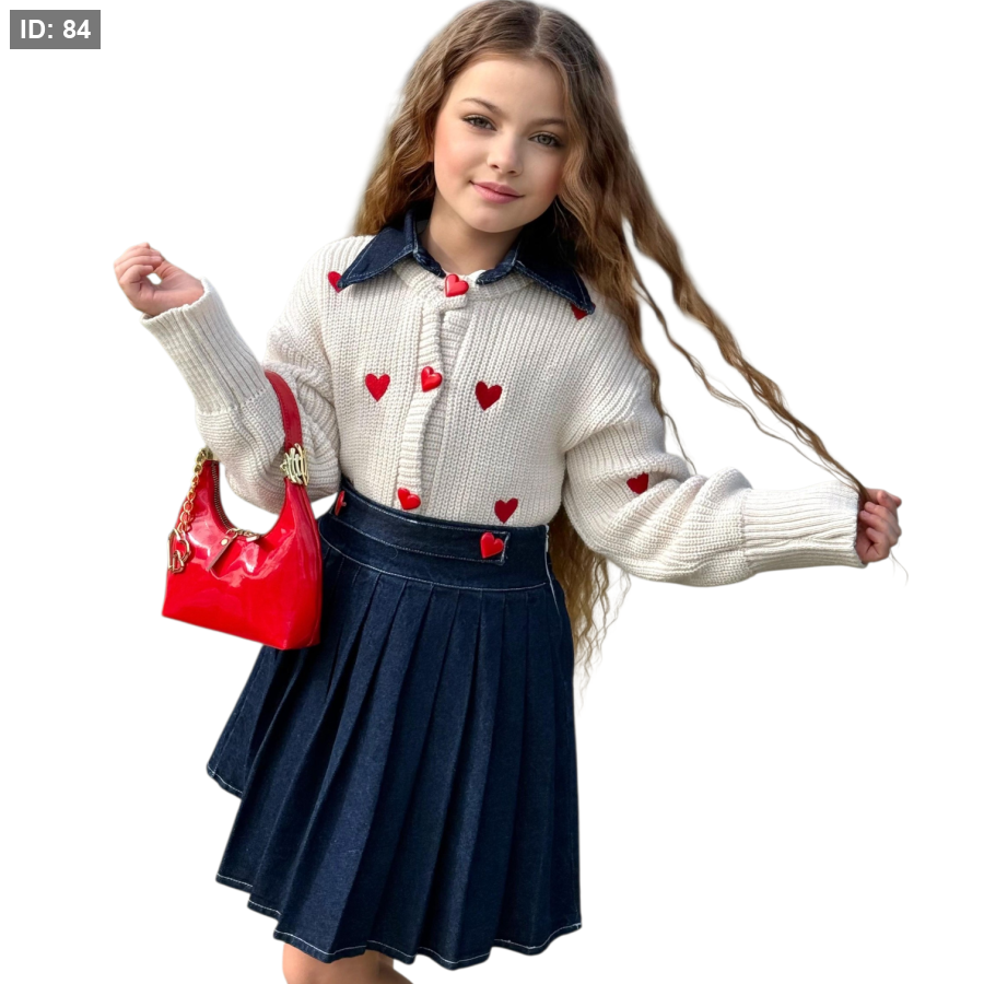 طقم تنورة جينز قلوب